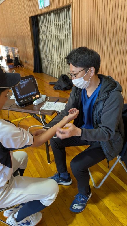 1月10日に吉備中学校で行われた野球検診に院長、理学療法士の牧、小島、成宮、鈴木、馬場の6名が参加してきました。100名を超える中学生の野球部を対象にエコーブース、トレーナーブース、セルフチェックブースに分かれ野球肘などの怪我予防や早期発見に向けてアドバイスを行いました。今シーズンが怪我なく最高のパフォーマンスが発揮できるよう選手の活躍を応援しております。
