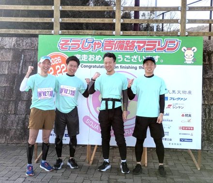 2月22日総社市で開催された“そうじゃ吉備路マラソン”のハーフ(21.0975km)の部に理学療法士の森岡、馬場、小島、成宮がランナーとして参加してきました。4人ともに無事に完走できました。普段はサポートに回ることが多いですが実際にスポーツを体験することで競技の楽しさや難しさ、レースまでのマネジメントなど得るものは多かったです。ぜひ、来院の際は参加したスタッフに裏話を聞いてみてください。