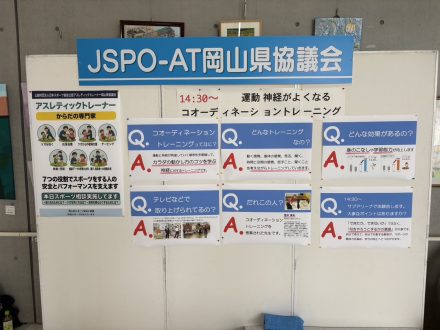 3月8日、シゲトーアリーナで行われた第10回おかやまスポーツフェスティバルに理学療法士の森岡が参加してきました。このイベントはさまざまな競技団体が集まり、子どもたちに多くの競技を楽しんでもらう催しです。私は「スポーツ相談」ブースを担当し、スポーツに関する相談を受けました。猫背などの姿勢、関節の痛み、体の動かし方などの相談を子供から大人の方々まで幅広く対応させて頂きました。当院でも何かお困りのことがございましたら、気軽にお声かけ下さい。